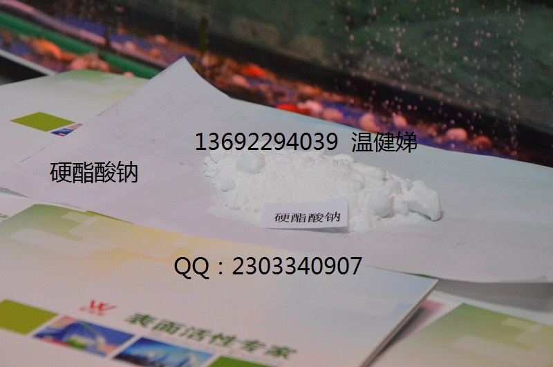 深圳供应水溶性硬酯酸钠除油除蜡粉清洗剂原料硬酯酸钠性状描述: 白色粉末或颗粒,有脂肪味,在空气中有吸水性。易溶于水提高水洗性,水溶液因水解而呈碱性。遇酸分解成硬脂酸和相应的钠盐主要用途:1.洗涤剂:用于控制漂洗过程中的泡沫,提高洗涤剂的水洗性2.乳化剂或分散剂:用于聚合物的乳化和抗氧化剂中等。用于清洗剂中具有强的除油除蜡作用,是目前国内市场通用的除油粉,除蜡粉主要辅料!3.腐蚀抑制剂.